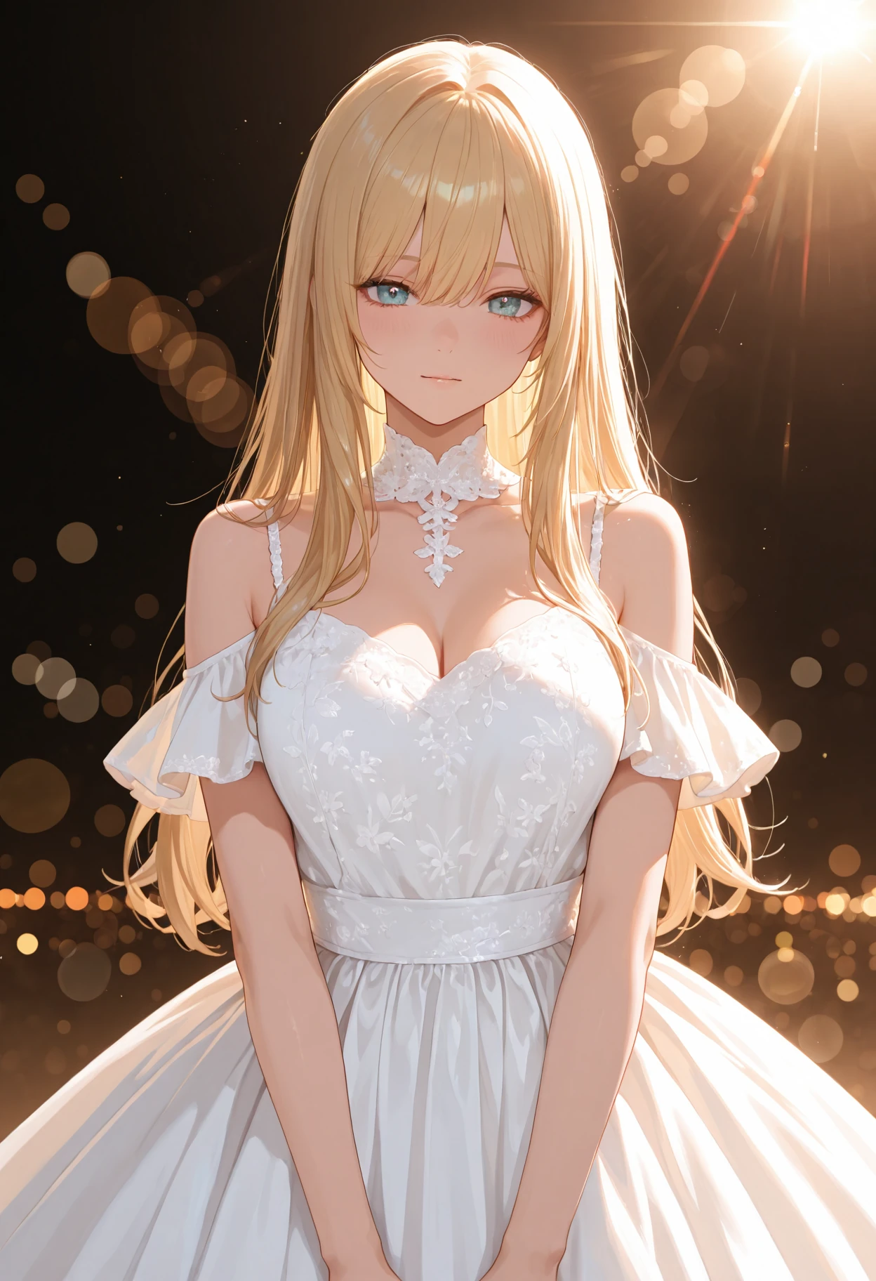 1girl, solo, dress, masterpiece, best quality, absurdres, very aesthetic, Lens flare