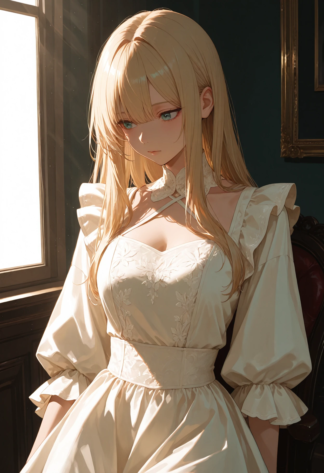 1girl, solo, dress, masterpiece, best quality, absurdres, very aesthetic, Sidelighting