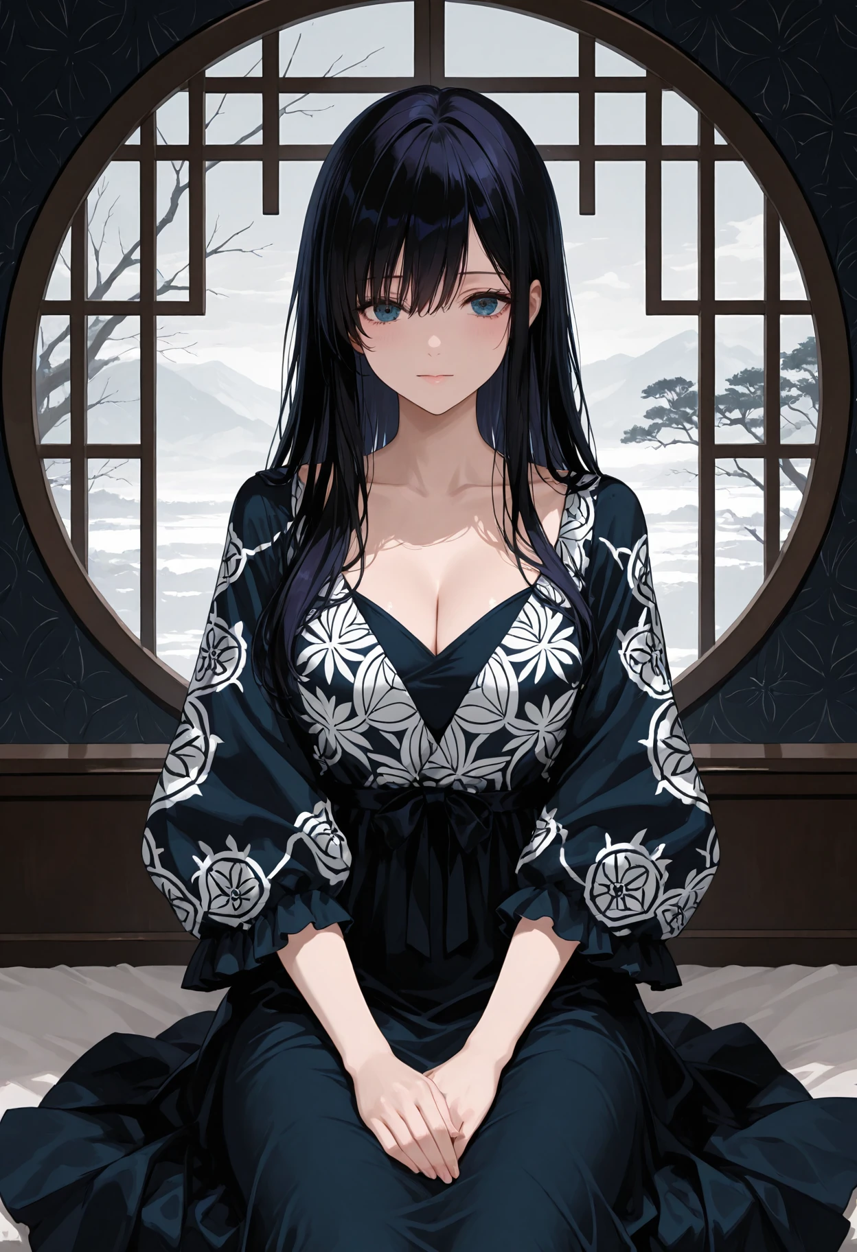 1girl, solo, dress, masterpiece, best quality, absurdres, very aesthetic, Kagome (pattern)