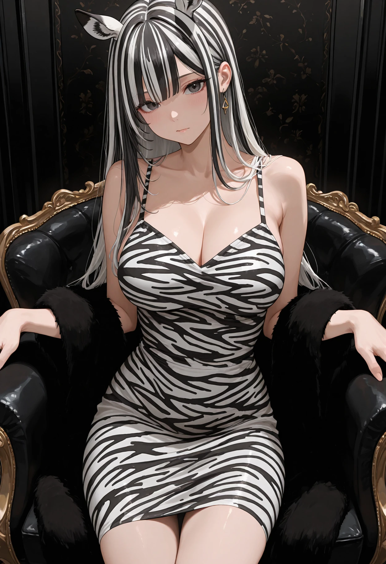 1girl, solo, dress, masterpiece, best quality, absurdres, very aesthetic, Zebra print