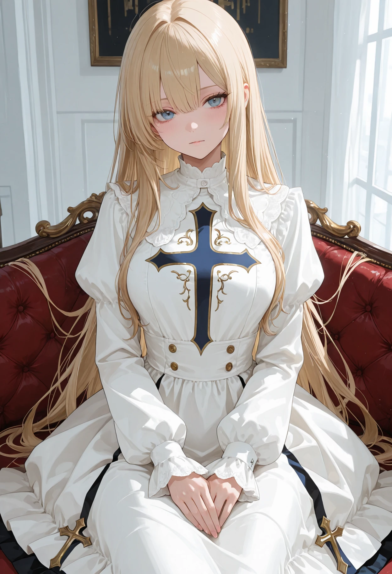 1girl, solo, dress, masterpiece, best quality, absurdres, very aesthetic, Cross print