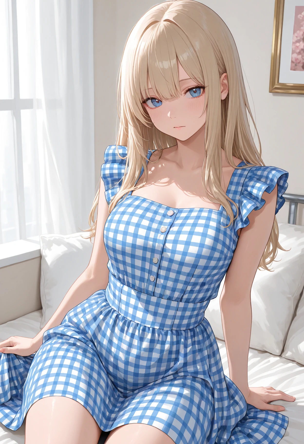 1girl, solo, dress, masterpiece, best quality, absurdres, very aesthetic, Gingham