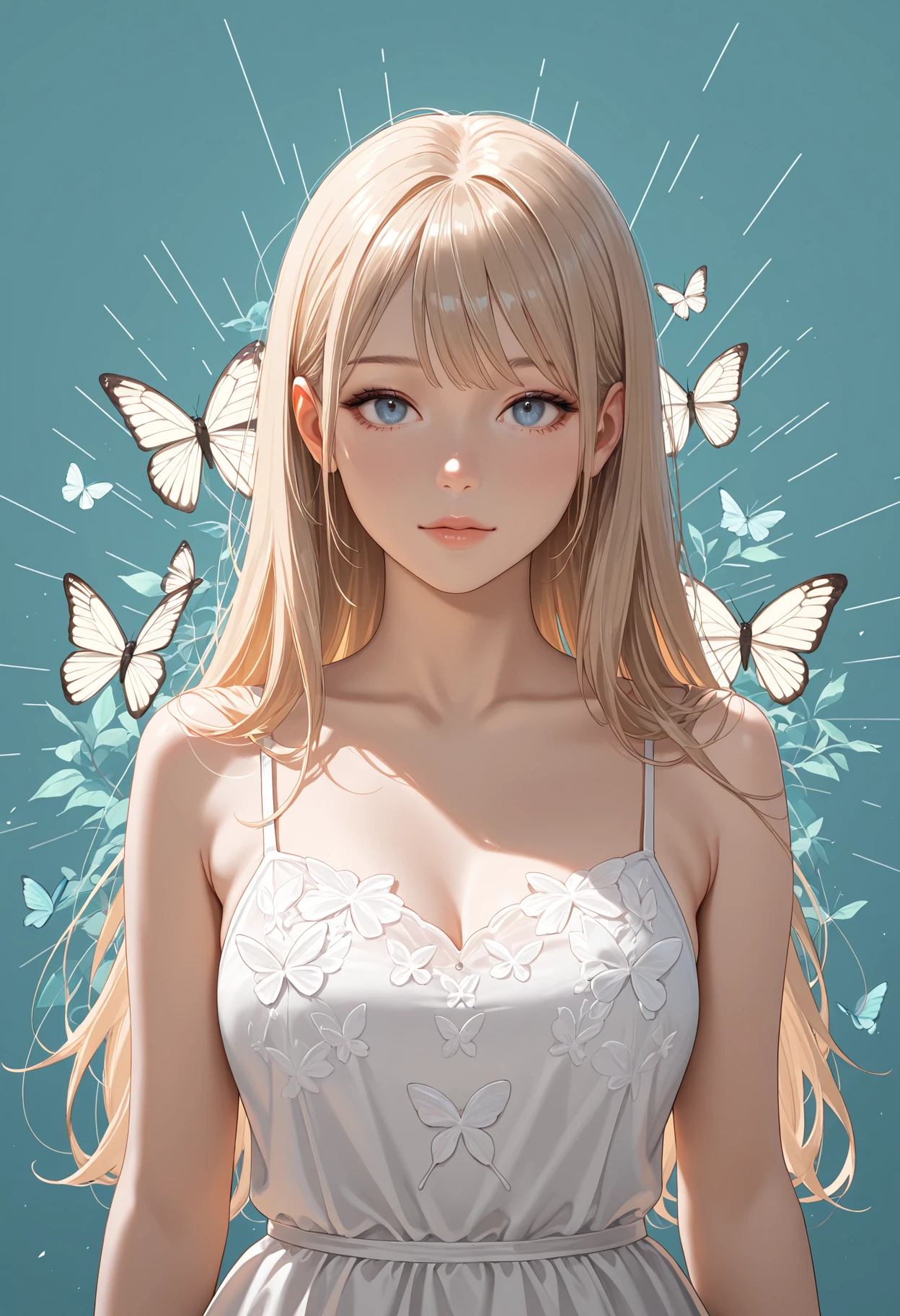 1girl, dress, masterpiece, best quality, absurdres, very aesthetic, realistic, butterfly background