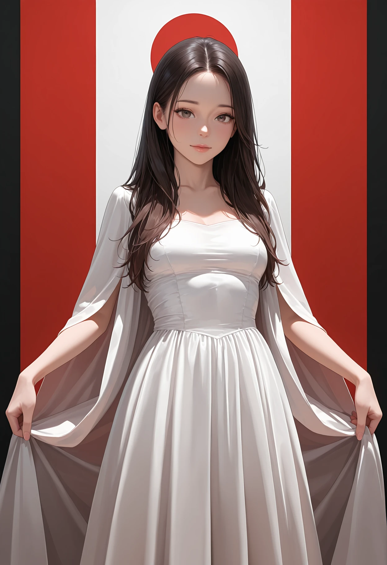 1girl, dress, masterpiece, best quality, absurdres, very aesthetic, realistic, flag background