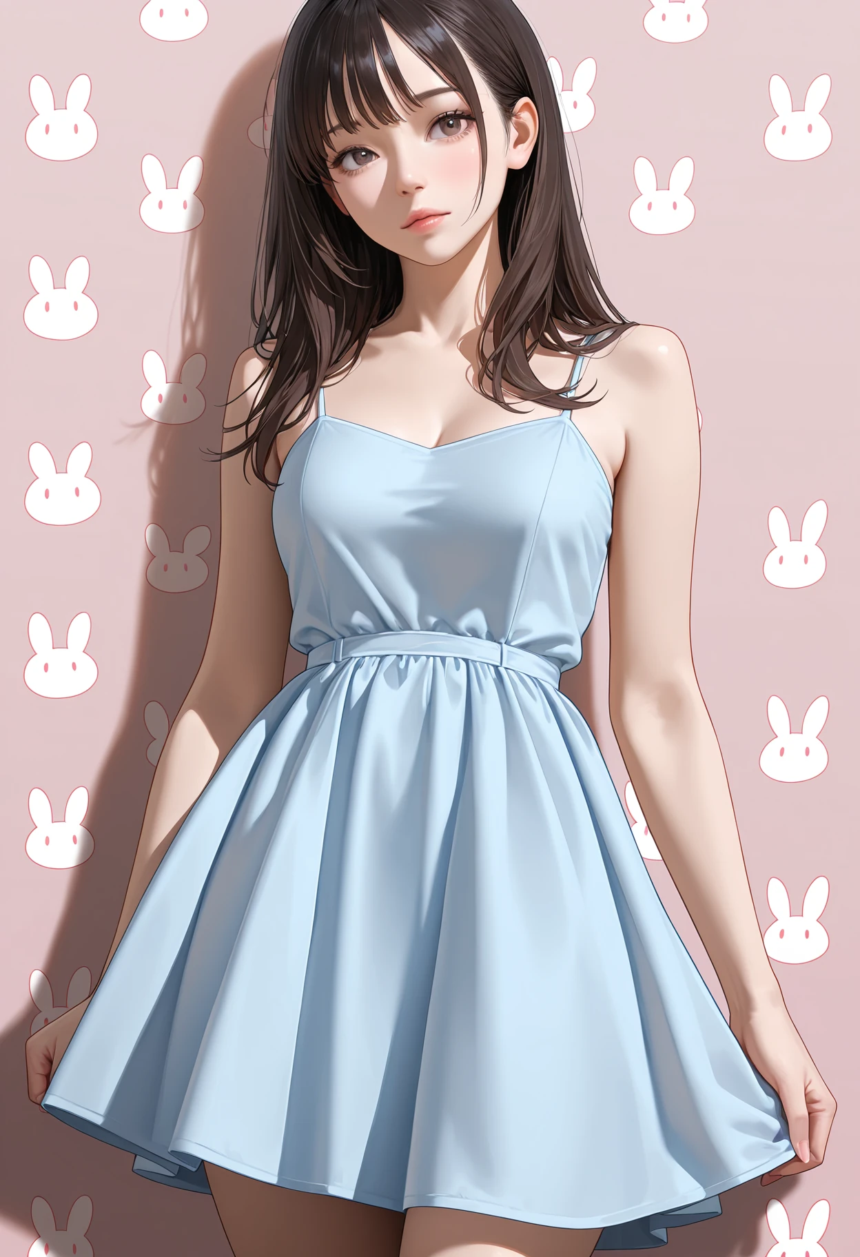 1girl, dress, masterpiece, best quality, absurdres, very aesthetic, realistic, rabbit background