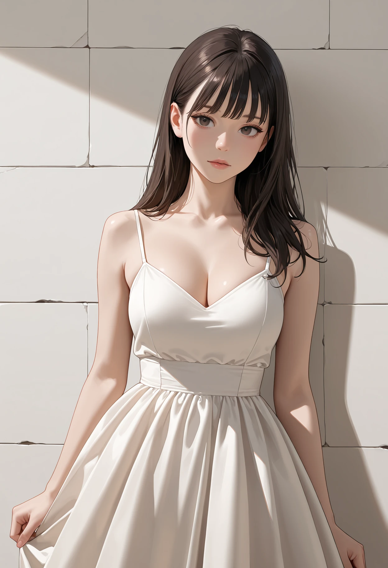 1girl, dress, masterpiece, best quality, absurdres, very aesthetic, realistic, paper background
