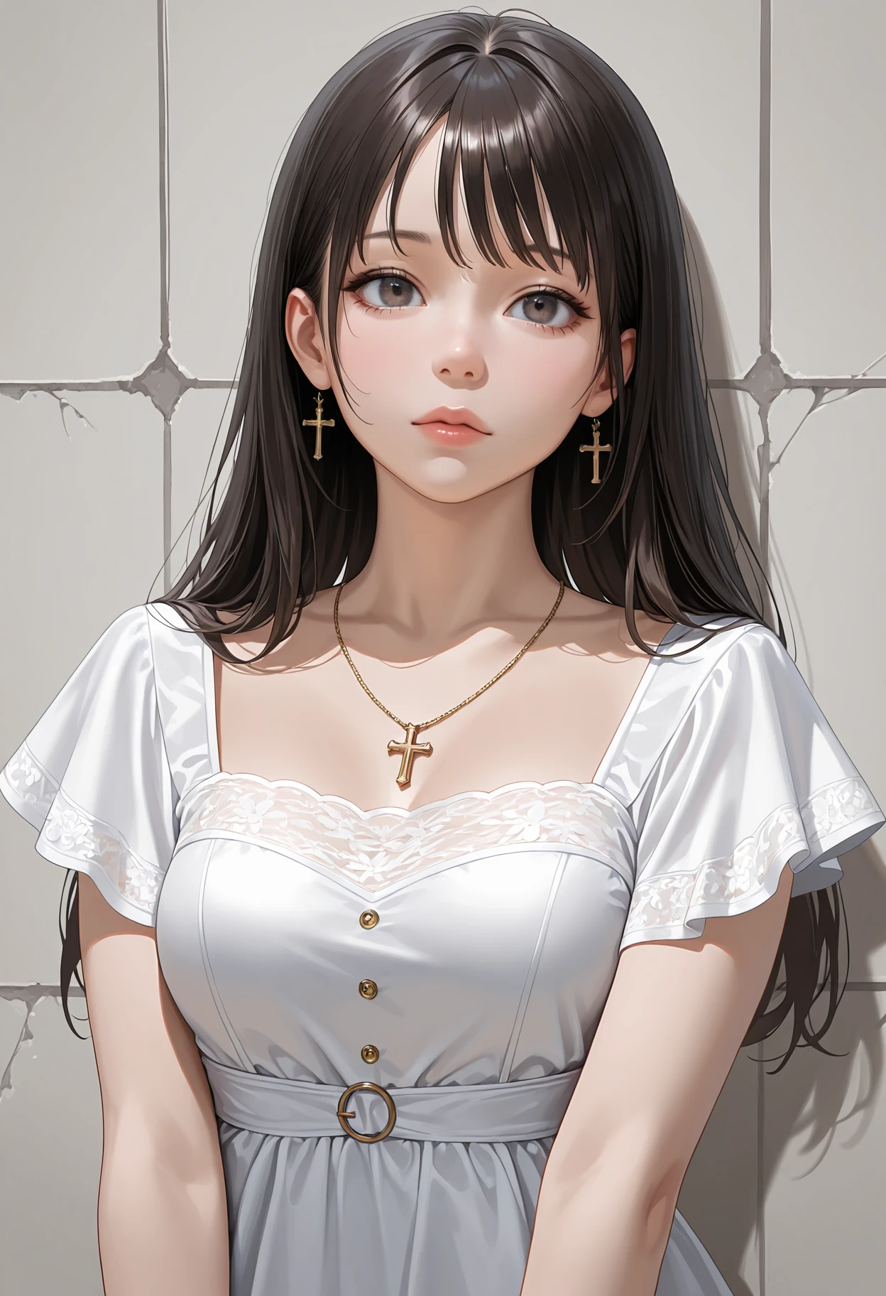 1girl, dress, masterpiece, best quality, absurdres, very aesthetic, realistic, cross background
