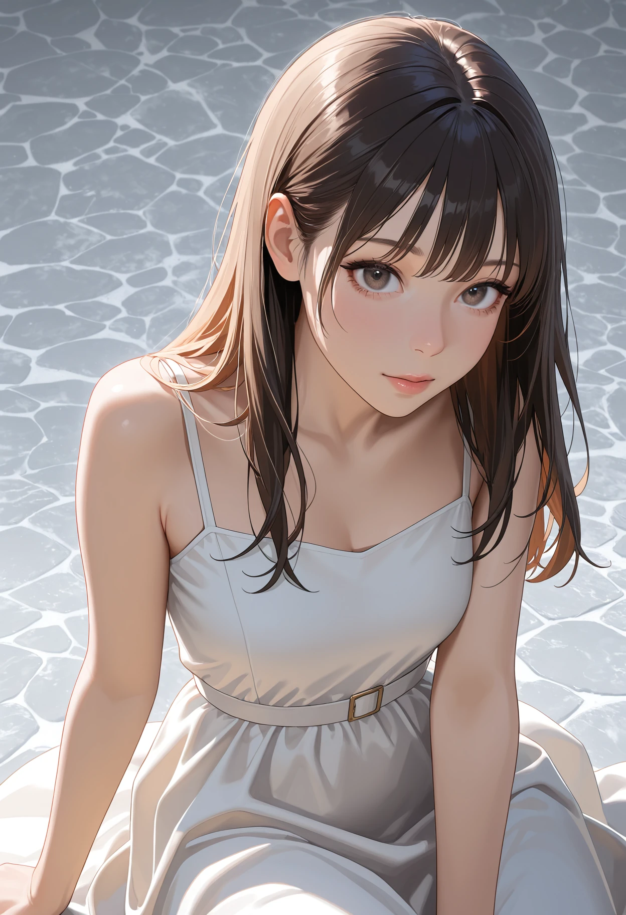 1girl, dress, masterpiece, best quality, absurdres, very aesthetic, realistic, marble background
