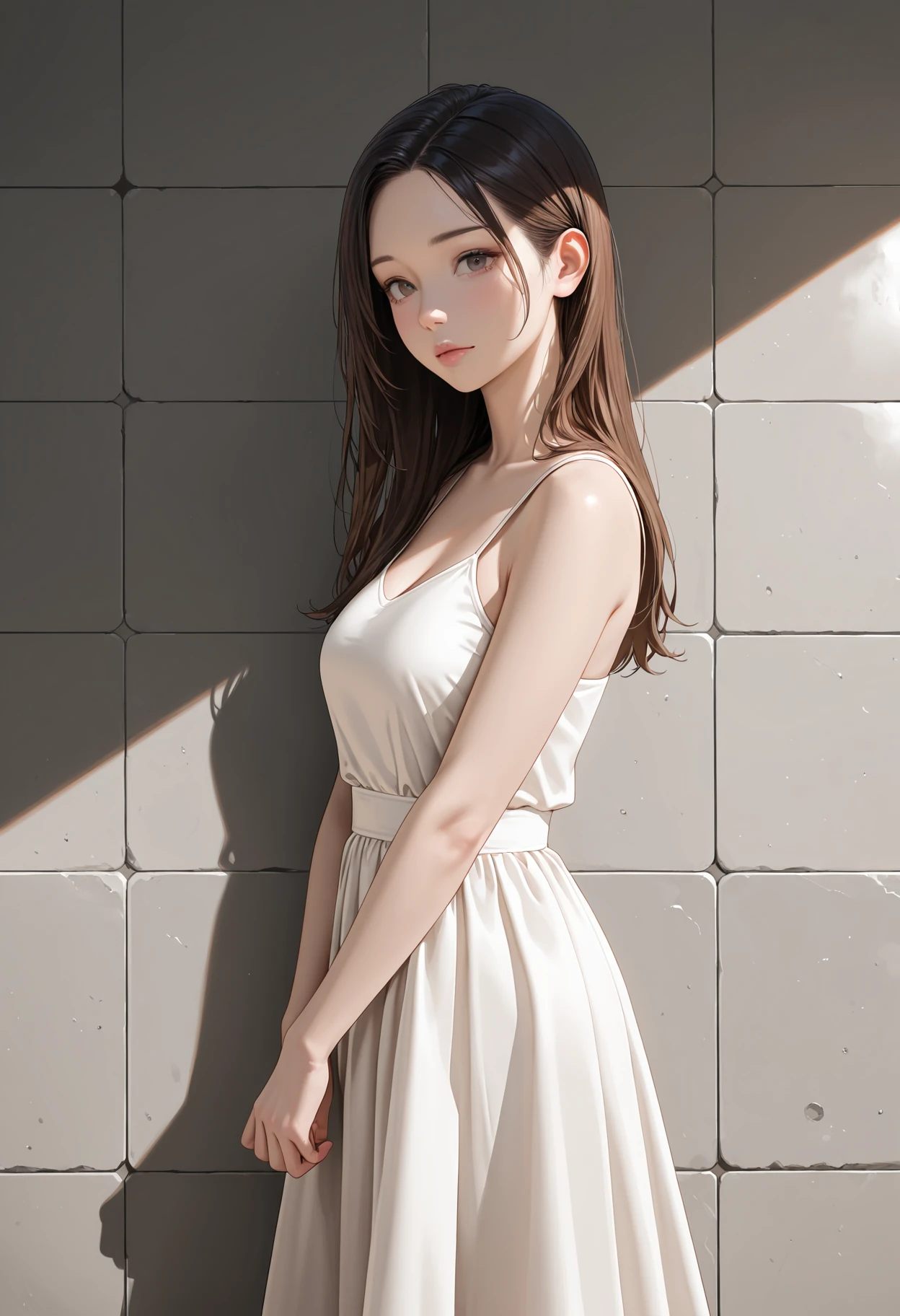 1girl, dress, masterpiece, best quality, absurdres, very aesthetic, realistic, mosaic background