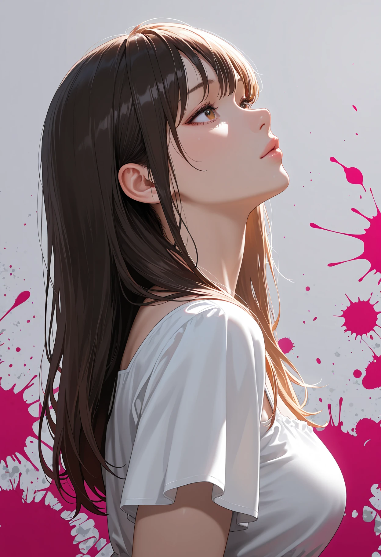 1girl, dress, masterpiece, best quality, absurdres, very aesthetic, realistic, splatter background