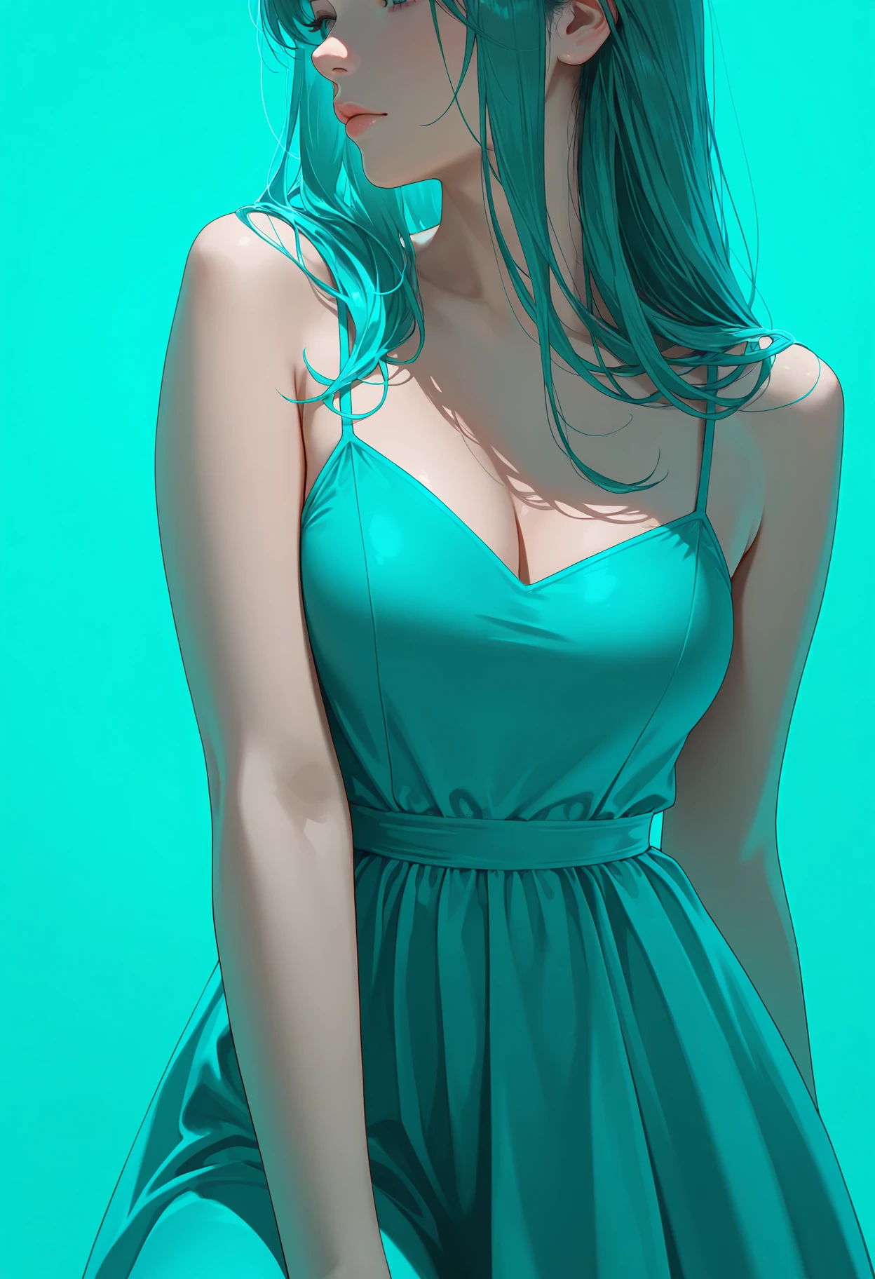 1girl, dress, masterpiece, best quality, absurdres, very aesthetic, realistic, aqua theme