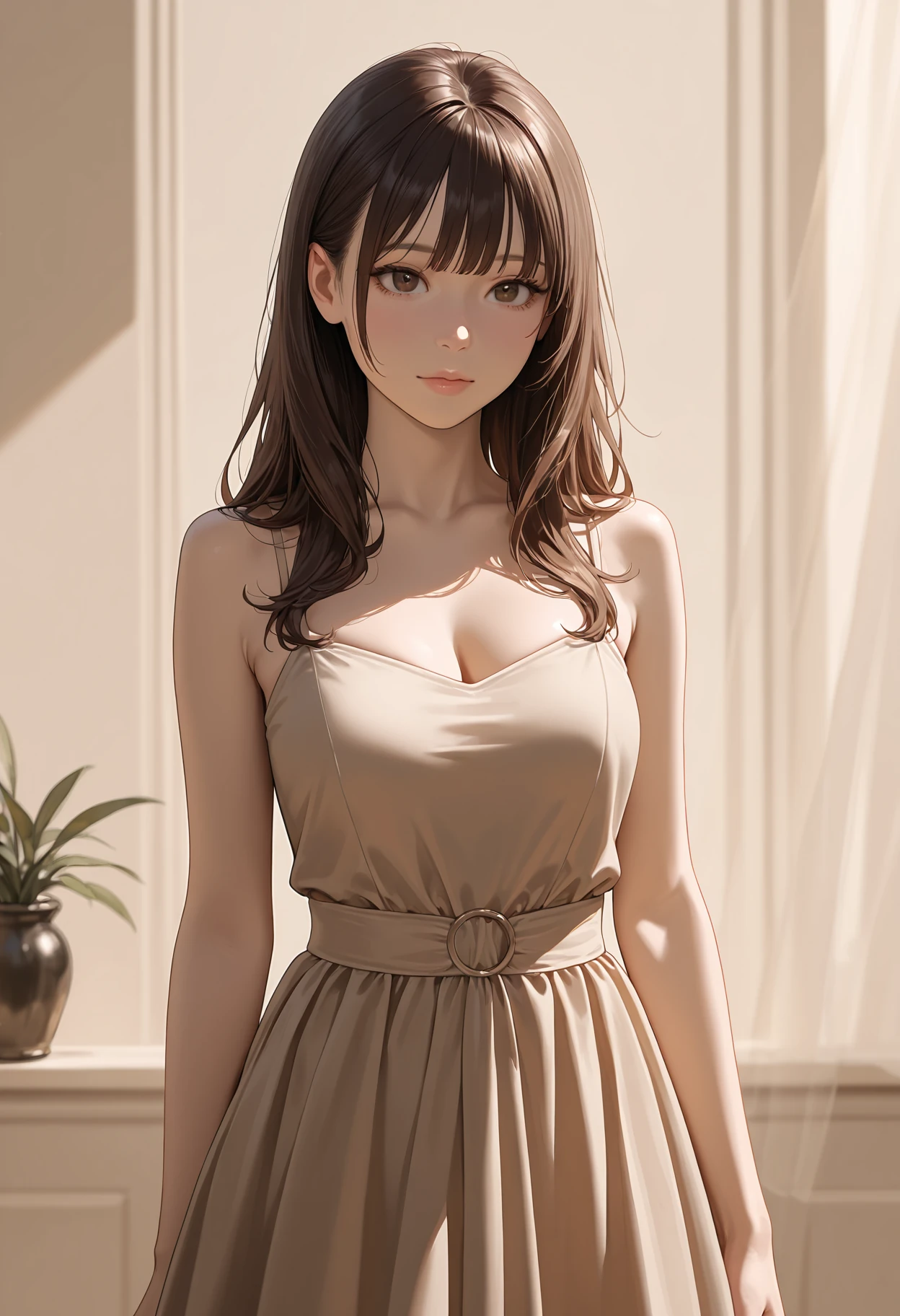 1girl, dress, masterpiece, best quality, absurdres, very aesthetic, realistic, sepia