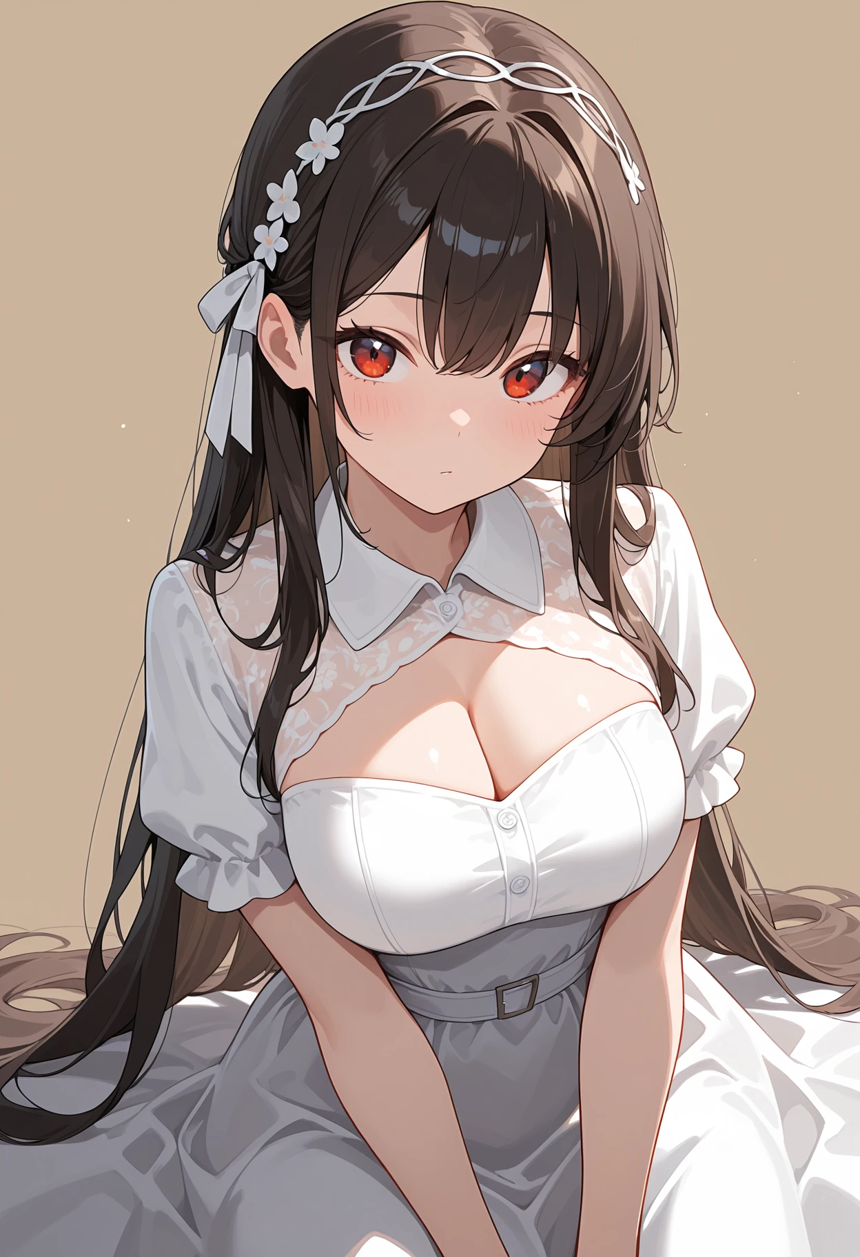 masterpiece, best quality, absurdres, very aesthetic, 1girl, solo, dress, brown background