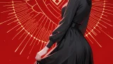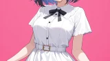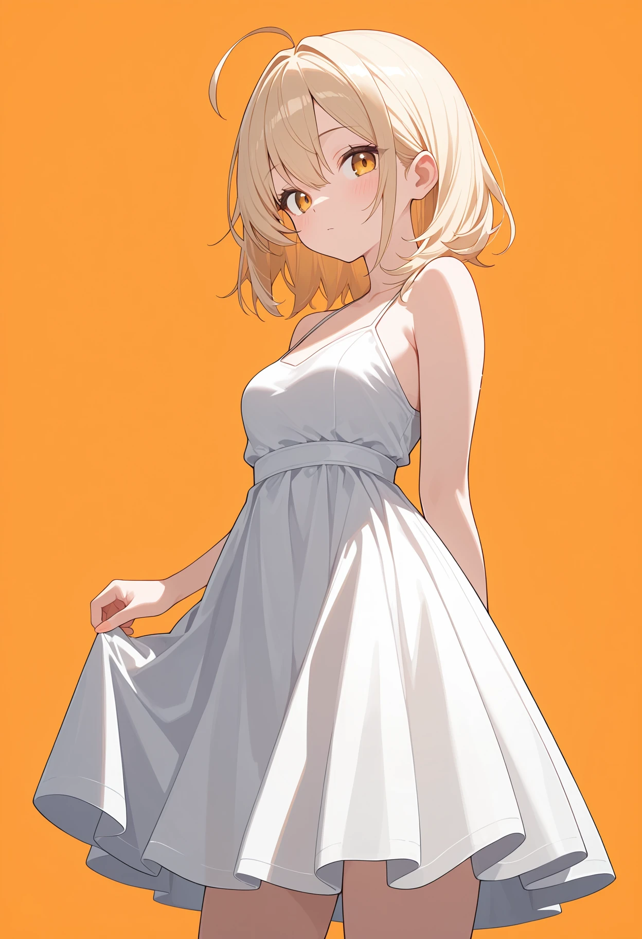 masterpiece, best quality, absurdres, very aesthetic, 1girl, solo, dress, orange background