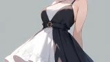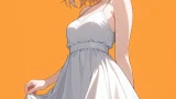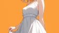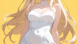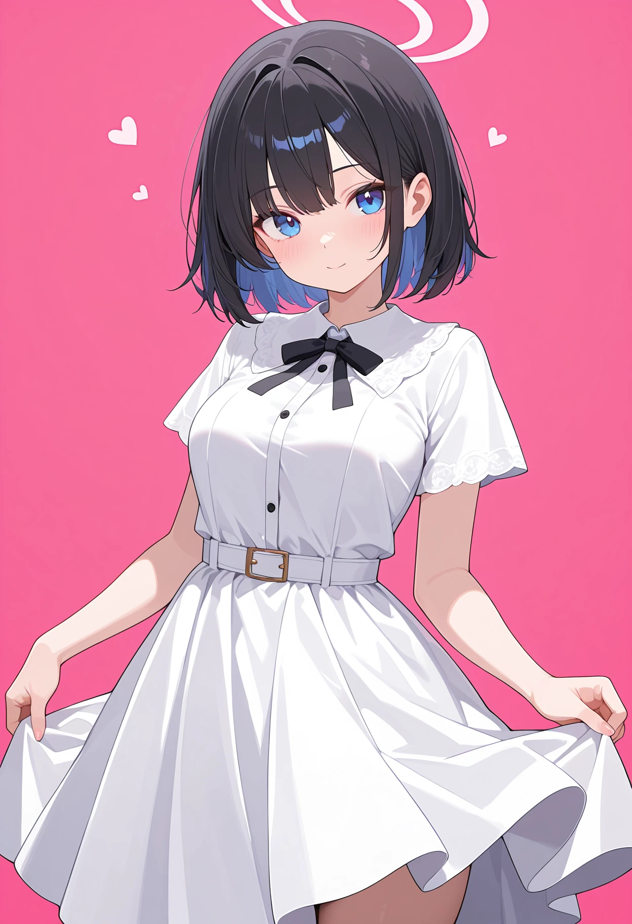 masterpiece, best quality, absurdres, very aesthetic, 1girl, solo, dress, pink background
