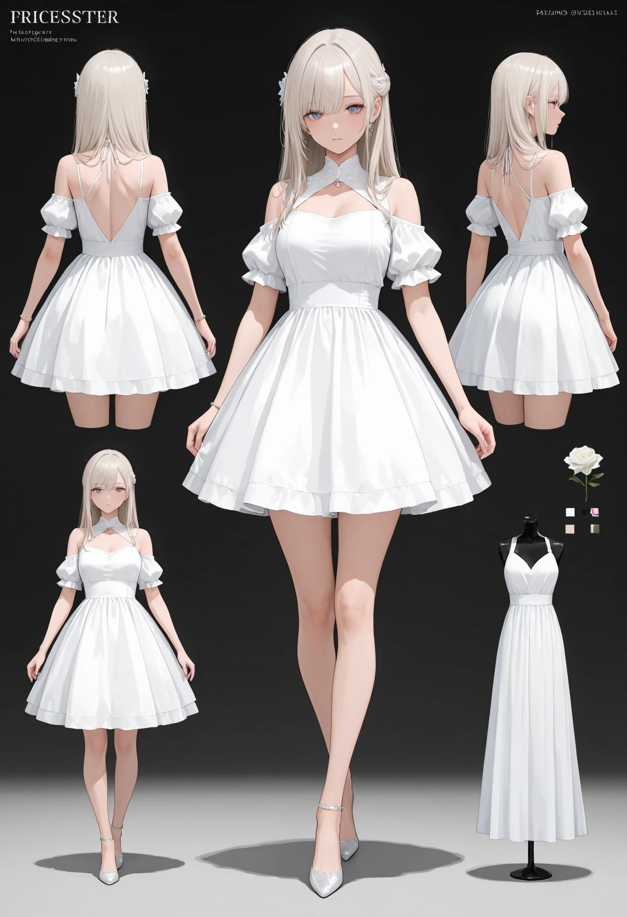 1girl, solo, dress, masterpiece, best quality, absurdres, very aesthetic, Reference sheet