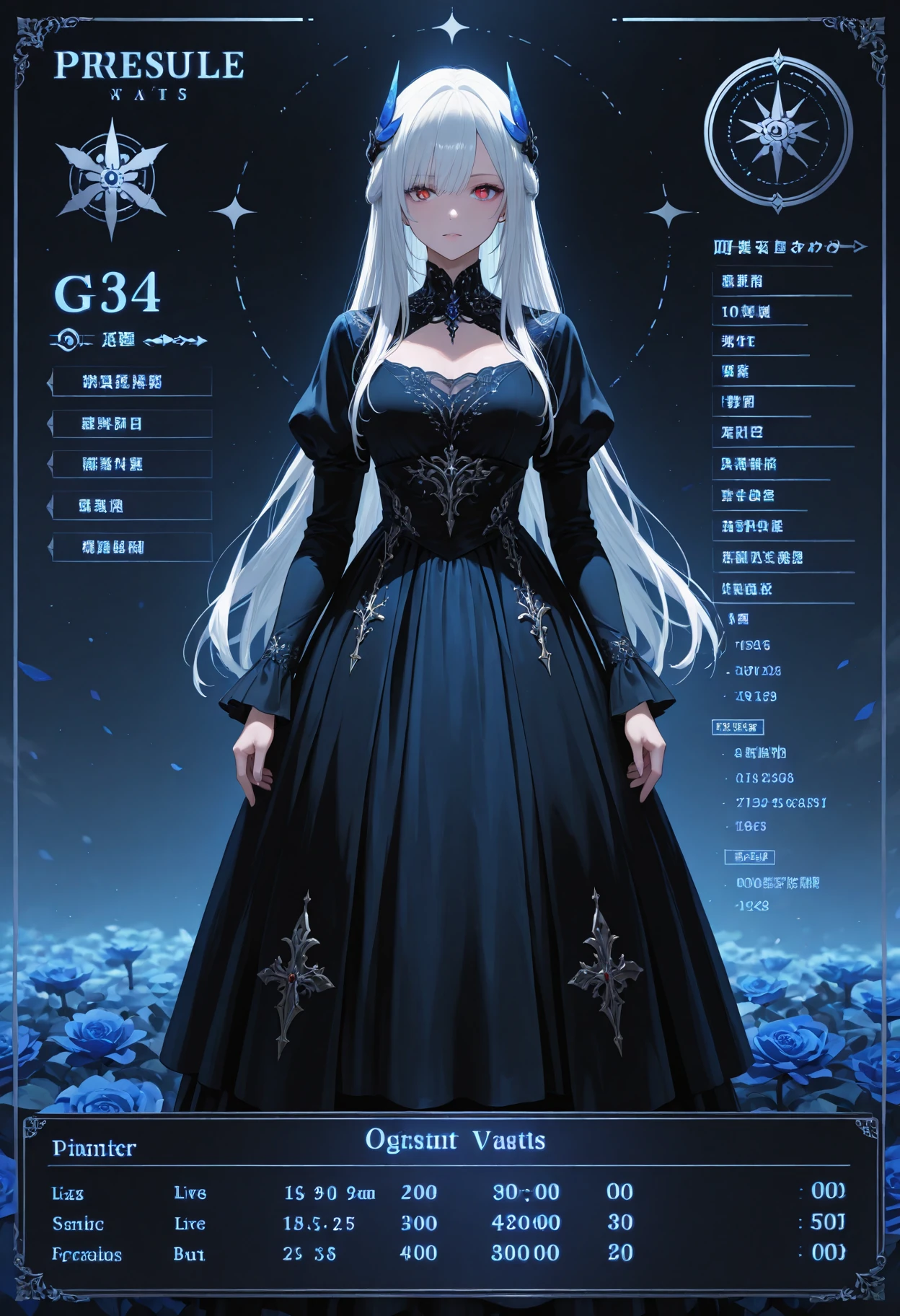 1girl, solo, dress, masterpiece, best quality, absurdres, very aesthetic, Stats