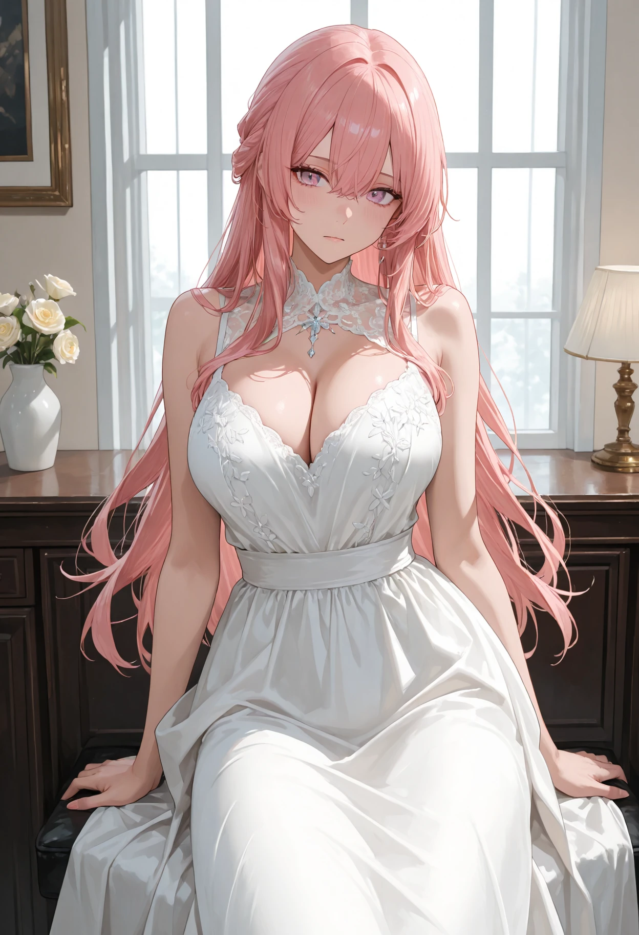 1girl, solo, dress, masterpiece, best quality, absurdres, very aesthetic, Has downscaled revision